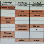 Die Niederlage 1:4 hört sich deutlicher an. als sie spielerisch zustande kam, denn die ersatzgestärkte M5 -Bezirksliga- machte es dem BC Achern nicht leicht, die zum Sieg erforderlichen Punkte zu erreichen. A bissel Glück bei Achern und auch a bissel Pech bei der M5 – und schon isses halt so geworden. Mannschaftlich aber eine tolle Leistung, wurde mir mitgeteilt. GRATULATION