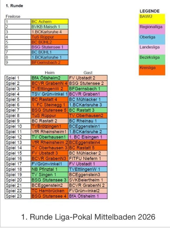 Viel Erfolg denen, die in der 1. Runde antreten müssen
